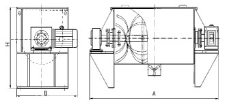 1、动力随物料特性变化而变化,上表中的动力是根据物料比重为512kg/m3,并且无流动性计算出来的。机器装物料的最大重量(kg)=工作容积(m3)×512kg/m3。 2、标准机型无夹套、无喷液装置、如需要,订货时须说明。 |