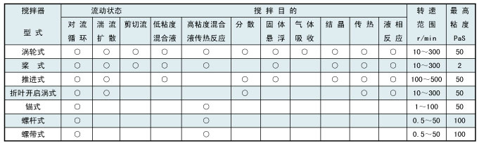 | ◎ 搅拌器型式选型表 |