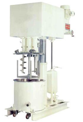 釜体可电加热、蒸气加热及油水循环加热。釜体上的独特温度探测装置确保温度无误差,夹套内盘管可实现冷却。 釜体内壁为大型立车精加工,确保活动刮刀在旋转时把釜体内壁及釜底的物料完全刮掉。 釜内另外二组高速分散器,使各种物料受到强列的剪切与分散混合。 釜内的搅拌浆与高速分散器的自转均采用变频调速,可根据不同工艺、不同粘度选择不同转速。 |