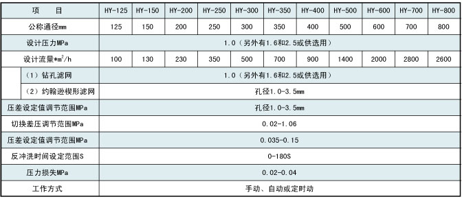 | SLAY型全自动自清洗过滤器主要技术参数 |