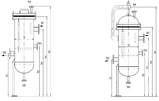 | 注:1.滤芯数指折合标准型滤芯(10”长)数目。 2.本图适用于DN≥500,由于工艺参数各不相同,因此,在订货时,我公司将按实际的工艺参数作适当修正。 |