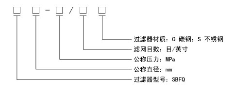 | 示例:SBFQ100-1.6/200S表示:公称压力1.6 MPa,材质为不锈钢,滤网目数200目/英寸,公称直径100mm的气体过滤器。 |